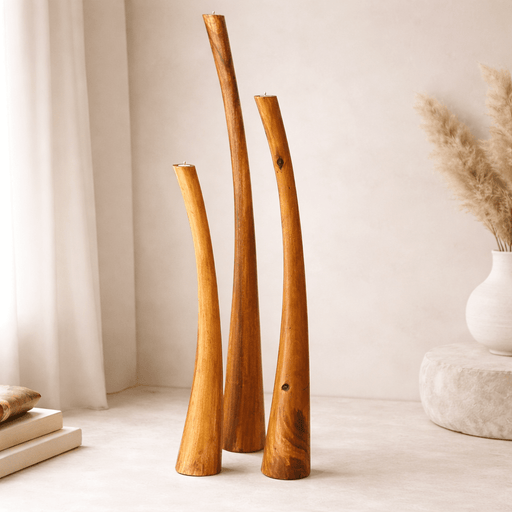 تتضمن مجموعة حوامل الشموع الثلاثية من جادينج ثلاث قطع مصنوعة بحرفية عالية من خشب السوار الطبيعي، تتميز كل منها بنقوشها الفريدة وقوامها العضوي الغني...