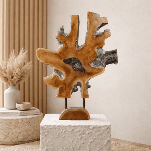 حامل بيلا ديكو قطعة ديكور أرضية لافتة للنظر مصنوعة من جذر خشب الساج الطبيعي المقطع. يتميز كل حامل بشكل عضوي فريد يبرز جمال حبيبات الخشب وملمسه، مما...