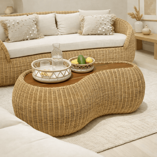 طاولة قهوة إنايا من وود كلتشر هي إضافة أنيقة ومتعددة الاستخدامات لأي مساحة معيشة. مصنوعة يدوياً بسطح خشبي متين وقاعدة من الخوص الأنيق، تجمع بين ال...