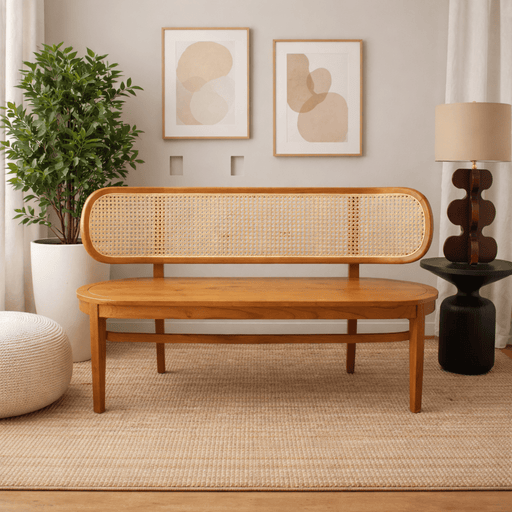 مصنوعة من الخشب الصلب، تتميز هذه الأريكة المتينة بأرجل على شكل حرف V تضفي عليها لمسة عتيقة مميزة. يتكون مقعدها الأنيق من قصب الروطان المنسوج يدويًا...