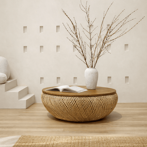 طاولة قهوة إنايا من وود كلتشر هي إضافة أنيقة ومتعددة الاستخدامات لأي مساحة معيشة. مصنوعة يدوياً بسطح خشبي متين وقاعدة من الخوص الأنيق، تجمع بين ال...
