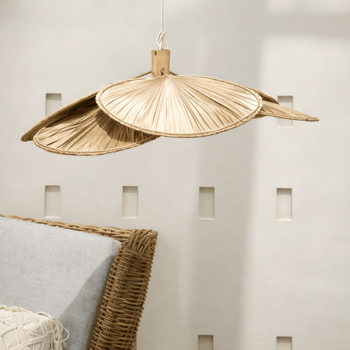 مصنوعة يدوياً من أوراق النخيل الطبيعية، تضفي هذه المصابيح المعلقة دفئاً طبيعياً وأناقةً عصريةً على أي مكان. يخلق نسيجها الخفيف وألوانها الترابية تو...
