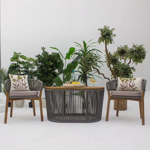استمتع بتناول الطعام والاسترخاء بأناقة مع كرسي الطعام جاستن. يتميز بإطار ألومنيوم متين، وأرجل من خشب الساج، ولمسات أنيقة من الحبال، ليجمع بين المتا...
