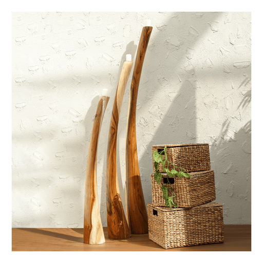 The Three Gading Candle Holder Set includes three beautifully crafted pieces made from natural Suar wood, each showcasing the wood's unique grain p...