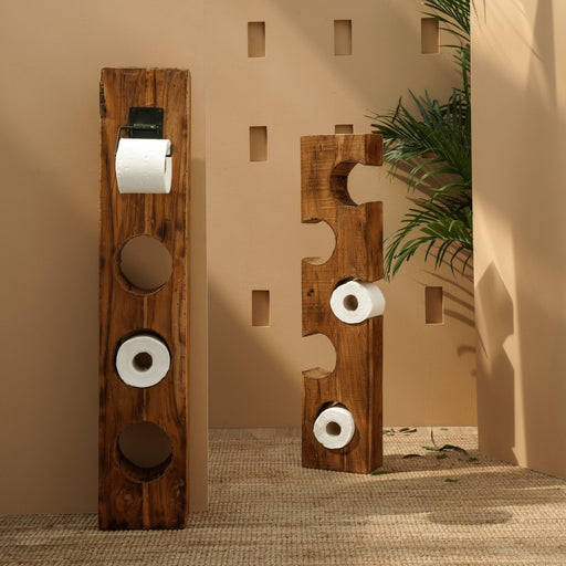 The Tissue Roll Holder combines practicality with rustic charm, crafted from lightweight wood with a warm, textured finish. Featuring multiple hole...