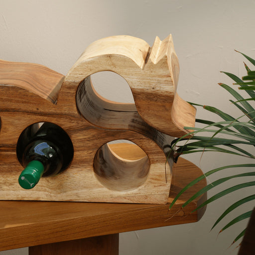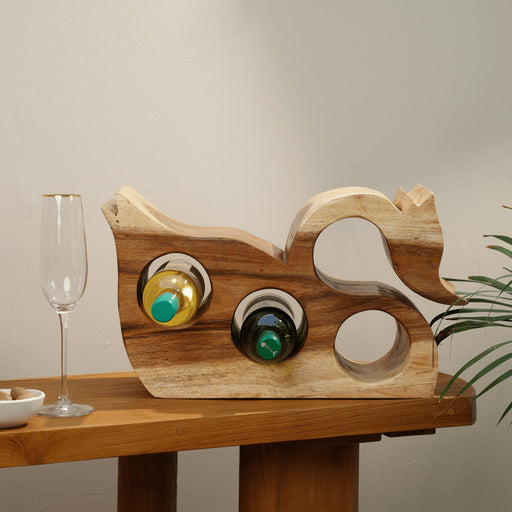 The Duck Bottle Holder is a delightful and functional tabletop piece, expertly handcrafted from durable teak wood. Shaped like a charming duck, thi...