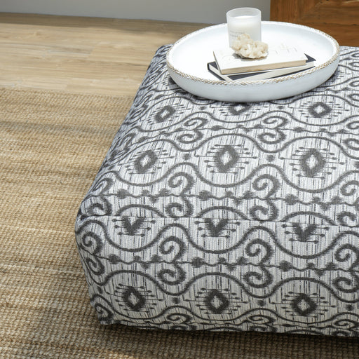 The Batik Square Pouf, a stylish and versatile addition to your living space. Crafted from soft grey fabric, this square pouf offers both comfort a...