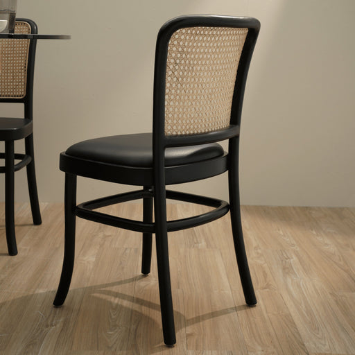 The Alfred Dining Chair in black exudes modern sophistication with its sleek, black-painted wood frame and a comfortable black PU leather seat cush...