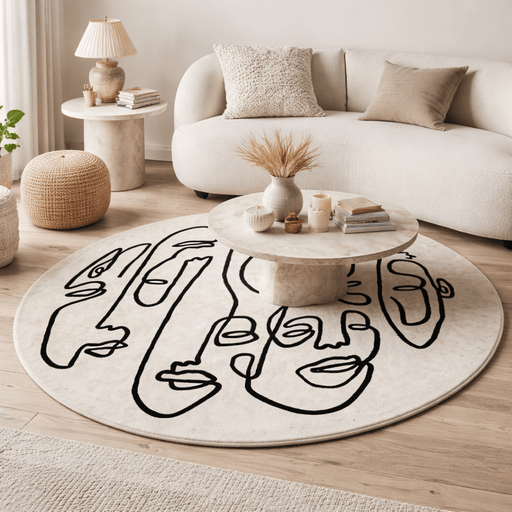 The Circle Soul rug by Salventius masterfully employs the one-line portrait technique, symbolizing unity in soul, mind, and psyche. With two faces ...
