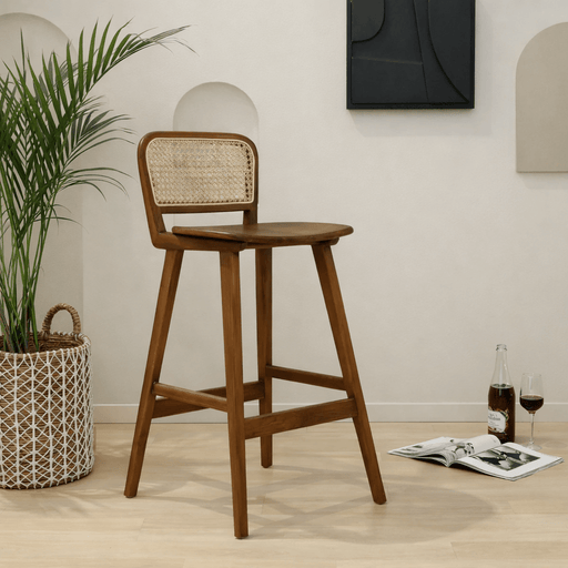 The Bellie Bar Chair combines durability and style for your indoor space. Crafted from solid teak wood with a comfortable wicker seat, it offers bo...