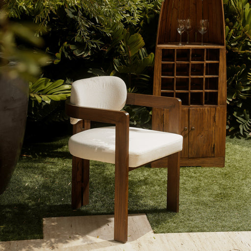 The  Marsha Arm Chair is crafted from high-quality teak wood, has a sturdy and durable frame, handmade by skilled artisans from the far east. The b...