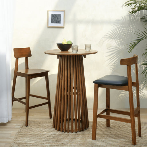 Introducing the Kentana Round Bar Table: marrying timeless elegance with sturdy craftsmanship. Crafted from premium teak wood, its slatted base des...