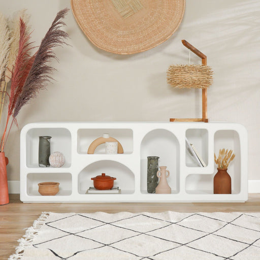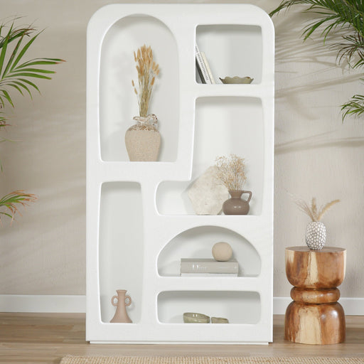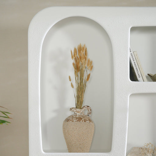 Transform your space with the Isabelle Bookshelf, a Mediterranean-inspired marvel. Its textured white exterior and cave-like shelves add a touch of...