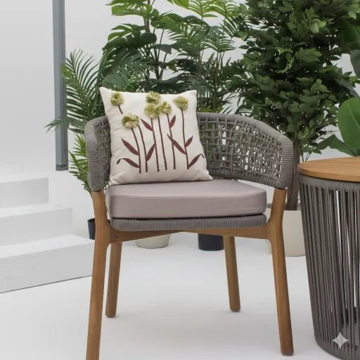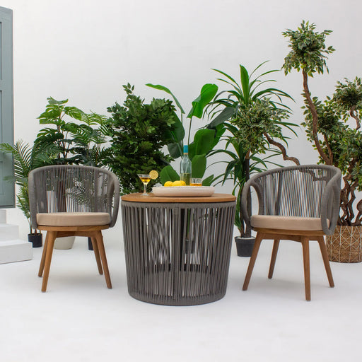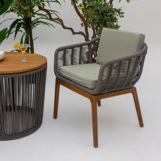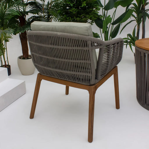 Dine and relax in style with the Justin Dining Chair. Featuring a sturdy aluminum frame, teak legs, and elegant rope accents, it offers both durabi...