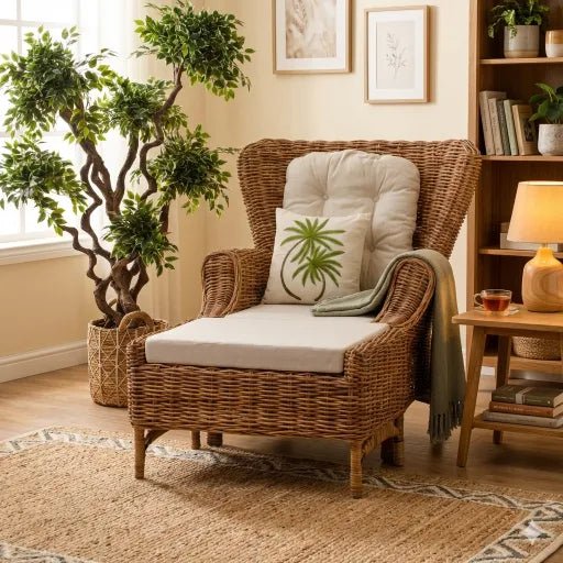 The Orensel Chair with Ottoman is a perfect blend of comfort and natural beauty, crafted from kubu material in a sophisticated grey finish. Designe...