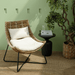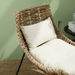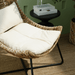 The Cleo Lounge Chair is a cozy outdoor chair handmade with abaca, featuring a curved backrest for comfortable support. The chair includes a seat cushion and headrest cushion, and its legs are made of galvanized metal for durability and a modern touch. This chair is a stylish and comfortable addition to any outdoor space.