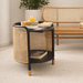 A stylish blend of mahogany wood and hand-woven natural rattan, the Demi Round Side Table features a black-painted frame and a built-in lower shelf perfect for storing books or magazines. Compact, elegant, and functional ideal for any room.
