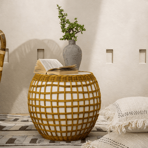 The Tylan Side Table blends modern durability with organic charm. Its sturdy fiber cement base provides a solid foundation, while the woven rattan ...