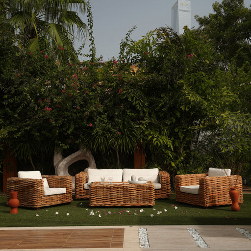 The Verona Living Set is a beautifully designed 4-piece indoor furniture set that blends natural charm with refined comfort. Crafted from Kubu Grey...